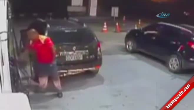 Tam o esnada diğer araçtan inen ve birinin elinde silah olduğu gözlenen 3 kişi cipten indirdikleri adamın hem parasını hem de aracını gasp ediyor. Hızlı bir şekilde ciplere binen gaspçılar, olay yerinden kaçarken benzin pompasının takılı olduğu araçlardan biri, pompayı böyle deviriyor.