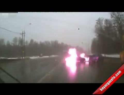 Kaza, Moskova yakınlarında meydana geldi. Yağışta aşırı hızlı olan otomobil sürücüsü, kayganlaşan yolda direksiyon hakimiyetini kaybedince karşı şeride geçti. Başka bir otomobile çarpan hızlı sürücünün aracı yanmaya başladı. O anlar ise kazaya uğrayan otomobilin arkasından gelen başka bir aracın kamerası tarafından görüntülendi. Kazada ağır yaralanan sürücü hastaneye kaldırıldı. Olaya tanıklık eden araç sürücüsü ise şaşkınlığını uzun süre üzerinden atamadı.