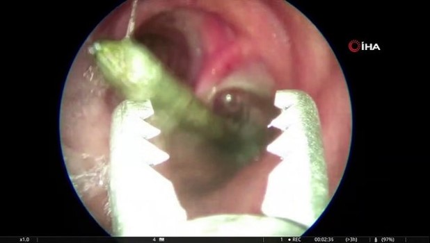 Bunun üzerine hastayı acil olarak ameliyata aldıklarını aktaran Kılıç, “Uyguladığımız Rijit Bronskoskopi işlemi ile nefes borusundaki 10 santimetrelik çiviyi başarılı bir şekilde çıkardık. Hastamızı ameliyat sonrası bir süre serviste takip ettikten sonra gün içerisinde şifa ile taburcu ettik. Nadir de olsa bu tarz durumlarla karşılaşıyoruz. Bu tür durumlarda hızlı müdahale etmek oldukça önemli. Trakeostomili hastaların bu şekilde yabancı cisimlerle soluk borusuna müdahale etmemeleri gerekiyor” diye konuştu.