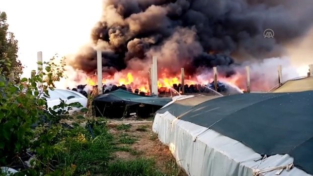 ADANA - Geri dönüşüm tesisinin bahçesinde çıkan yangına müdahale ediliyor (3)