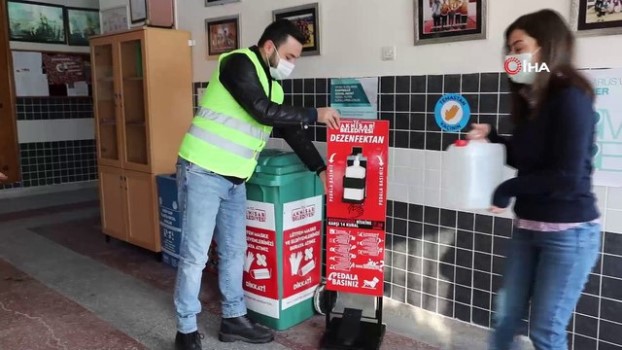 - Akhisar Belediyesi, ilçede yüz yüze eğitime başlayan okullarda dezenfekte ve temizlik işlemlerini tamamladı; her okula temassız dezenfektan ünitesi hediye etti. Akhisar Belediyesi Çevre Koruma ve Kontrol Müdürlüğü ekipleri, Belediye Başkanı Besim Dutlulu’nun talimatları ile harekete geçerek, yayınlanan karar sonrası ilçede yüz yüze eğitime başlayan tüm okulları dezenfekte etti ve temassız dezenfektan ünitesi hediye etti. Ayrıca atık oluşumunu önlemek ve çocuklarda temizlik bilinci oluşturmak amacıyla her okula geri dönüşüm kutuları yerleştirildi. Öğrenciler ve okul idarecileri yapılan hizmetten dolayı teşekkürlerini iletirken, Akhisar Belediyesi Çevre Koruma ve Kontrol Müdürlüğü personeli Özgür Polat, “Şehrimizdeki okullarda yüz yüze eğitimin başlaması ile birlikte Belediye Başkanımız Sayın Besim Dutlulu'nun talimatları ile yeniden açılan okullarımıza öğrencilerin sağlığı ve hijyeni için el teması olmadan, ayakla çalışan dezenfektan üniteleri yerleştirdik ve okullarımıza anti bakteriyel dezenfektan hediye ettik. Ayrıca öğrenci ve öğretmenlerimizin sağlığı için tüm okullarımızı dezenfekte ettik. Bunun yanı sıra yine başkanımızın direktifleriyle atık oluşumunu önlemek ve çocuklarda temizlik bilinci oluşturmak amacıyla her okula geri dönüşüm kutuları yerleştirdik. Düzenli aralıklarla bu atıkları toplayarak hem çevre kirliliğini önleyeceğiz hem de atıkları geri dönüşümle yeniden kullanabileceğiz. Akhisar Belediyesi Çevre Koruma ve Temizlik İşleri Müdürlüğü olarak öğrencilerimizin olduğu gibi, tüm halkımızın sağlığını korumak ve temiz bir ortam sağlamak için var gücümüzle çalışıyoruz” ifadelerini kullandı.