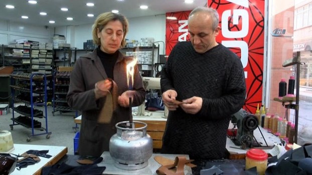 "İlk başlarda erkek işi diye bayağı yadırgandım" Yurttutan, ayakkabı üretiminin kadın işi olmadığını ve ilk başlarda yadırgandığını ifade ederek, konuşmasına şöyle devam etti: “İlk başlarda erkek işi diye bayağı yadırgandım ama ben onları duymazdan geldim. ‘Ben yapabilirim, aklım kesiyor’ dedim. İlk ustanın eline baktığımda ‘ben yarın geliyorum, çalışabilirim’ dedim ve o şekilde başladım. Şimdi burada beraber 3 arkadaşız, her bölümde kendimiz çalışıyoruz, terzi usulü ilk iş benden başlıyor. Deriyi parça parça kesip dikim ve çekim bölümü şeklinde devam ediyoruz.” “Meslek ölmesin diye 3 arkadaş başladık” Tamamen el yapımı ve el işçiliği ayakkabılardan günlük 50 tane ürettiklerini ve ilk başlarda meslek ölmesin diye böyle bir fikir ortaya çıktığına değinen Yurttutan, “İşin içinde bayan olunca görenlerin biraz tuhafına gidiyor. Bayanlar evde oturmasın, kafalarındaki bir işi araştırsın. En azından ev ekonomilerine katkıları olur. Bayanların yapamayacağı bir ley yoktur” ifadelerini kullandı. “İş arkadaşımızdı, patronumuz oldu” Sibel Yurttutan ile daha önce farklı atölyelerde, yaklaşık 5 yıldır da birlikte çalıştıkların söyleyen Şenel Güngör ise, “Sibel abla ile daha önce aynı firmada işçi olarak çalışmıştık. Bu işte çok istekli ve özverili olduğu için, iş arkadaşımızdı ama şimdi bizim patronumuz oldu. Allah nasip etti ve kendisi patronluğa kadar yükseldi. Önce işi sevmek lazım, Sibel abla da bu bayanlardan bir tanesi. Bizler erkek olarak, kadınların böyle atılımlarda bulunmasından gurur duyuyoruz, kendisiyle çalışmaktan da zevk alıyoruz” şeklinde konuştu.
