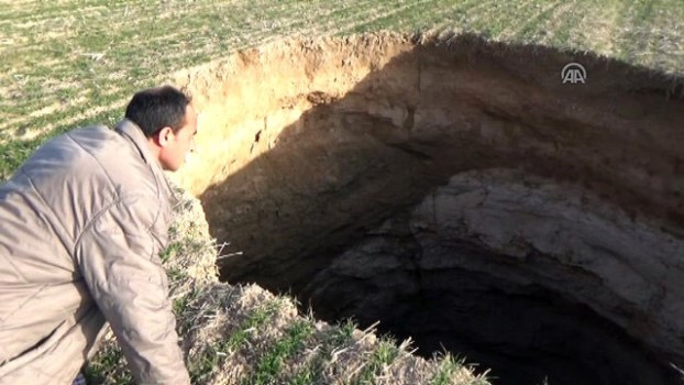 - Konya 'daki yeni obruk - Obruk alanından görüntüler - Bekir İlhan'ın konuşması - Detay - Konya 'nın Karapınar ilçesinde oluşan 12 metre çapında, 20 metre derinliğindeki obruk çiftçileri tedirgin ettiKONYA (AA) - Konya 'nın Karapınar ilçesinde yaklaşık 12 metre çapında, 20 metre derinliğinde obruk oluştu.İlçeye bağlı Reşadiye Mahallesi Küllükuyu mevkisinde Bekir İlhan'a ait tarlada oluşan obruk, bölgedeki çiftçileri tedirgin etti.Buğday ekili tarlada oluşan 12 metre çapında, 20 metre derinliğindeki obruğu farkeden Bekir İlhan, AA muhabirine, hayvanlarını yemlediği sırada meydana gelen sese yöneldiğinde tarlasındaki obruğu gördüğünü söyledi.