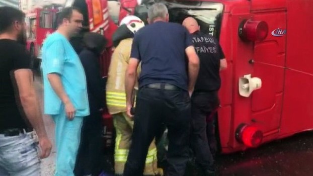 Şişli'de itfaiye aracı devrildi