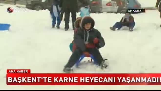 Ankara'da karne günü okullar tatil olunca öğrenciler okula gitmedi. Soluğu sokakta alan öğrenciler doyasıya kar oynadı. Kızaklarla kayan çocuklar renkli görüntüler oluşturdu.