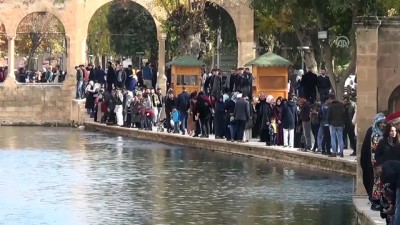 "Pastırma yazı" etkili oluyor - ŞANLIURFA - Balıklıgöl'ü ziyaret eden vatandaşlar - Balıklara yem verenlerden görüntü - Yöresel kıyafetlerle fotoğraf çektirenler - Sandala binenler - Kuşların yem yemesi Şanlıurfa 'da "pastırma yazı" etkili oluyor - Hava sıcaklığının 17 dereceye ulaştığı kentte, güneşli havayı ve hafta sonu tatilini fırsat bilen vatandaşlar, tarihi Balıklıgöl yerleşkesinde yoğunluk oluşturduŞANLIURFA (AA) - Hava sıcaklığının 17 dereceye ulaştığı Şanlıurfa 'da, güneşli havayı ve hafta sonu tatilini fırsat bilen vatandaşlar, tarihi Balıklıgöl yerleşkesinde yoğunluğa neden oldu.Türkiye'nin büyük bölümünde soğuk hava etkili olurken, Şanlıurfa 'da adeta yazdan kalma günler yaşanıyor.Termometrelerin öğleden sonra 17 dereceyi gösterdiği kentte, güneşli havayı ve hafta sonu tatilini fırsat bilen vatandaşlar, Hazreti İbrahim'in doğduğu ve ateşe atıldığı yer olarak rivayet edilen Balıklıgöl'e akın etti.Ülkenin farklı kentlerinden gelen vatandaşlar yerleşkede yoğunluk oluştururken, ziyaretçiler burada kutsal olduğuna inanılan balıklara yem attı ve dua etti.Aynzeliha Gölü'nde sandala binen vatandaşlar, tarihi Urfa Kalesi'ne çıkarak kenti kuş bakışı görme imkanı da yakaladı.Alandaki yöresel kıyafetleri giyerek hatıra fotoğrafı çektiren ziyaretçiler, daha sonra Hazreti İbrahim'in doğduğu rivayet edilen makamı da ziyaret edip tarihi Kapalı Çarşı'da alışveriş yaptı.Mersin'den arkadaşlarıyla kente gelen üniversite öğrencisi Sinem Işıkgöz, hafta sonunu ve sıcak havayı fırsat bilip yöreyi ziyaret ettiklerini anlattı.Buradaki atmosferden çok etkilendiğini anlatan Işıkgöz, akşam da sıra gecesine katılıp eğlenmeyi planladıklarını ifade etti. Ailesiyle yerleşkeyi ziyaret eden Enver Ay ise Malatya'dan geldiklerini dile getirerek, özellikle çocuklarının kenti çok beğendiğini sözlerine ekledi. Yöresel KıyafetHatıra FotoğrafıPastırma YazıÜniversite ÖğrencisiHafta Sonu Tatili