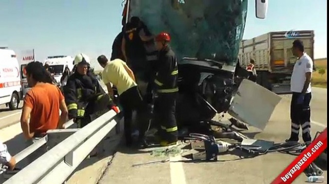 ise itfaiye ekipleri tarafından kurtarıldı. Sıkıştığı yerden kurtarılan muavin ise olay yerine gelen helikopter ambulansla Konya'ya sevk edildi.