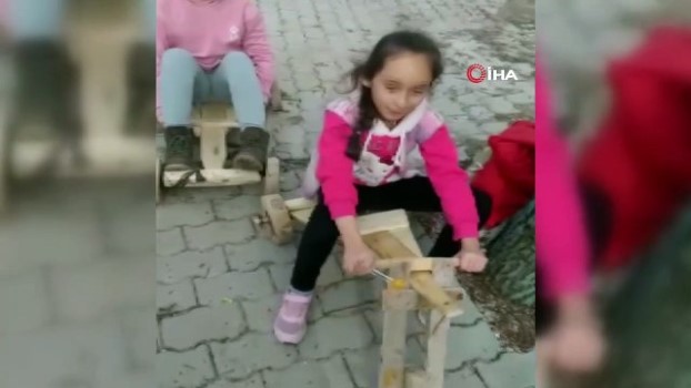 Çocuklar tahta araçlarıyla kıyasıya yarıştı