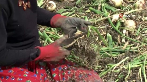 Tarım işçileri, tarladan bin bir emekle topladığı soğanları keserek satışa hazır hale getirirken okul çağındaki çocuklar maddi imkansızlık nedeniyle aileleriyle birlikte tarlada çalışıp okuyamamaktan yakınıyor. 1 yıl önce okulu bırakıp tarlada çalışarak aile bütçesine katkıda bulunmak zorunda kalan 12 yaşındaki Sıdıka Bal, “Okula gitmek istiyorum. Buraya mecburiyetten, ekmek parası için geliyoruz. Okuyup öğretmen olmak isterim” dedi.