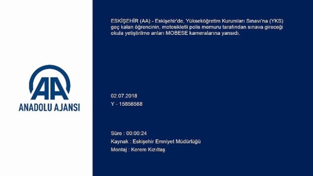 - MOBESE görüntüsüPolisin öğrenciyi sınava yetiştirme anları MOBESE'de - Eskişehir 'de, YKS'ye geç kalan öğrencinin motosikletli polis memuru tarafından sınava gireceği okula yetiştirilme anları kameralarca kaydedildiESKİŞEHİR (AA) - Eskişehir 'de, Yükseköğretim Kurumları Sınavı'na (YKS) geç kalan öğrencinin, motosikletli polis memuru tarafından sınava gireceği okula yetiştirilme anları MOBESE kameralarına yansıdı.AA muhabirinin aldığı bilgiye göre, dün, YKS için Eskişehir Osmangazi Üniversitesi girişinde trafik önlemi alan Motosikletli Şahin timinde görevli polis memuru Orhan Ergin'in yanına gelen bir öğrenci, sınav yerine yetişemeyeceğini söyleyerek yardım istedi.Bunun üzerine polis memuru Ergin, motosikletle öğrenciyi sınava gireceği binaya yetiştirdi.Motosikletli polisin öğrenciyi sınava yetiştirme anları bölgedeki MOBESE kameralarınca kaydedildi. Polis MemuruKameraMuhabirTrafik ÖnlemiMemur