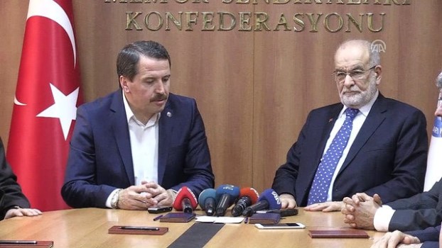 Milli gelirin adil dağılımını sağlamaya karar vermek gerektiğine işaret eden Karamollaoğlu, "Biz milli gelirimizi öyle dağıtacağız ki bundan herkes kendi geçimini sağlayacak kadar pay alacak. Bu işçi, memur gibi emeğiyle ücretini kazananlar değil sadece, bundan sonra emeklilik dönemi geliyor. Emeklilik haklarını kazananlar da bu seviyede ücret almaları gerekir." ifadesini kullandı.Gazetecilerin sorularını da yanıtlayan Karamollaoğlu, parlamenter sisteme ilişkin bir soru üzerine, şunları söyledi:"Biz, prensip itibarıyla başkanlık sistemine karşı değiliz. Güçlü bir parlamentonun olmazsa olmaz olduğuna inanıyoruz. Parlamento, cumhurbaşkanını denetleyecek bir güçte olmalı. Cumhurbaşkanı layüsel olmamalı, meclis mutlaka her konuya müdahale edebilmeli."Karamollaoğlu, parlamenter sisteme de dönülebileceğini aktararak, "Bizim parlamenter sisteme topyekun bir itirazımız yok. Ama hakikaten yönetimde istikrar önemli bir unsur. Onu da ifade etmek istiyorum." ifadesini kullandı.İttifak üyeleriyle parlamenter sistem üzerine tartışmaya itirazlarının olmayacağını belirten Karamollaoğlu, "Biz zaten ilkeler bazında bir ittifak olsun istemiştik. İlkelerimiz de belli. Kuvvetler ayrımı bunun ana unsurunu oluşturuyor." değerlendirmesini yaptı. - Türk - İş'e ziyaretKaramollaoğlu, Türk - İş Genel Başkanı Ergün Atalay'ı da ziyaret etti.Atalay ile görüşmesinin ardından gazetecilere açıklama yapan Karamollaoğlu, işçilerin sorunlarına ilişkin değerlendirmelerde bulundu. Karamollaoğlu, bir gazetecinin sorusu üzerine, Anayasa Mahkemesi Genel Kurulunun, siyasi partilerin seçim ittifakı yapmalarına imkan tanıyan kanunun bazı hükümlerinin iptali ve yürürlüğünün durdurulması istemiyle CHP'nin yaptığı başvuruyu reddetmesine ilişkin görüşlerini aktardı.Karamollaoğlu, şunları kaydetti:"Ben birazcık reddedilebilir gibi düşünüyordum. Belki iptali başka sorunlara sebep olur diye. Burada endişe giderilmeli. Sandıklar birleştiriliyor, vatandaş oyunu nasıl kullanacak, kendi köyünden başka köye nasıl gidecek? 'Efendim bu bölgelerde emniyet sağlanamadığı için biz sandıkları birleştirdik' deniliyor. Nasıl taşınacak, taşınırken bunların üzerinde bir baskı oluşacak mı, oluşmayacak mı? Esas mesele bu. Seçim güvenliği esas olan. Bu seçim güvenliği tam olarak sağlanırsa bizim bir diyeceğimiz yok. Bu endişelerin giderilmesi lazım. Bütün bunlara rağmen, taşınabilir sanıklarla ilgili 300 bine yakın bir seçmen kitlesi söz konusu. Bu, toplam seçmen içerisinde büyük bir rakam belki değil ama ne olursa olsun kendi bölgesinde etkili ki bu bölge genelde Güneydoğu bölgesi. Bundan dolayı da biz YSK'den tedbir almasını bekliyoruz."