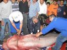 Marmara Denizi'nin Beylikdüzü Gürpınar açıklarında balıkçıların ağına 5 metre boyunda ve yaklaşık 600 kilogram ağırlığında bir köpekbalığı takıldı.