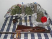Edinilen bilgiye göre, Geriş Mahallesi Kuvva-i Milliye Bulvarı'nda polis şüphelendiği K.Y'nin kullandığı aracı durdurdu. Araçta yapılan aramada, gazete kâğıdına sarılı halde, tahminen 45 gr. esrar maddesi ele geçirildi. Zanlıların üst aramalarında ise T.B.'nin pantolonunun cebindeki cüzdanda 5 gr. kurutulmuş ve içimlik hale getirilmiş esrar maddesi bulundu. Bunun üzerine soruşturmayı derinleştiren polis, şüpheli S.U.'nun evinde yapılan aramada da 180 gr. kurutulmuş esrar maddesi, 620 gr. kenevir tohumu, 1 adet 7,65 mm çaplı, seri numarası ve markası olmayan tabanca, 1 adet şarjör ve 19 adet MKE yapımı dolu fişek bulunarak el konuldu. Diğer şüphelilerden K.Y.'nın evinde 450 gr. civarında esrar maddesi, T.B.'nin evinde 1 adet teskeresiz ve "CESE" ibareli, 16 numara tek kırma av tüfeği bulunarak muhafaza altına alındı. Burhaniye İlçe Tarım Müdürlüğü'nün ekspertiz raporunda, ele geçirilenlerin daralı toplam 643,29 gr. esrar maddesi ve 616,39 gr. kenevir bitkisi tohumu olduğu öğrenildi. Zanlılar, savcılıkta ifadeleri alındıktan sonra çıkarıldıkları mahkemece tutuksuz yargılanmak üzere serbest bırakıldı.