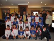 Danone Küçük Erkekler Futbol Turnuvası'nda ilk iki sırayı paylaşan Çağlayan İlköğretim Okulu ve Atatürk İlköğretim Okulu futbol takımları, Manavgat Belediye Başkanı Şükrü Sözen'i makamında ziyaret etti