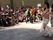 Velilerin çocuklarını da getirdiği etkinliğe katılanlar, piyanistin söylediği şarkılarla ve dansöz eşliğinde eğlendi.