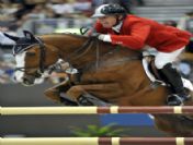 epa02118685 US Rich Fellers rides his horse Flexible to win the competions first round at the FEI World Cup Jumping Final, at the Palexpo in Geneva, Switzerland, 15 April 2010. EPA/MARTIAL TREZZINI