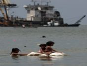 epa02119277 Filipino children frolic ing the murky waters of Manila bay , Philippines on 16 April 2009 . Manila residents have been taking a dip amid the sweltering heat despite repeated warnings from the Health department that the water may be contaminated . EPA/FRANCIS R . MALASIG