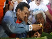 epa02123669 Children eat their lunch during the Former Philippine president Joseph ' Erap ' Estrada ( unseen ) lunch gathering for his 73rd birthday at a resettlement area in Taytay town , Rizal province east of Manila , Philippines 19 April 2010 . Estrada , ousted in 2001convicted of large-scale corruption in 2007 , returns to the elections campaign trail as he runs again for president in the upcoming 10 May national elections . EPA/DENNIS M . SABANGAN