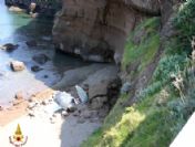 epa02125407 A handout photograph released by Vilgili del Fuoco showing Cala Rossano on the island of Ventotene,Pontine Islands, Italy on 20 April 2010 after rocks fell from a cliff ledgekilled two girls aged 1413 years old from Rome who were on a school trip on the island with their class. EPA/VIGILI DEL FUOCO / HANDOUT EDITORIAL USE ONLY/NO SALES