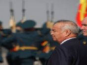 epa02125025 Russian President Dmitry Medvedev (L)Uzbek President Islam Karimov (R) shake hands during their meeting in Moscow's Kremlin, Russia 20 April 2010. RussiaUzbekistan are interested in strong power in Kyrgyzstan, President Dmitry Medvedev said at a meeting with his Uzbek counterpart Islam Karimov. EPA/ALEXANDER ZEMLIANICHENKO / POOL