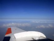 epa02125479 A handout photograph released on 20 April 2010 by DLR Institue for PhysicsAtmosphere showing a photograph taken on board the DLR Falcon near Leipzig on 19 April 2010. A successful Falcon measurement flight was performed on 19 April 2010 for probing plumes over Germany from the Iceland Eyjafjallaj?kull volcano eruption. Layers of volcanic ash were detected by Lidarprobed in-situ with aerosol instruments. Under suitable viewing conditions, the ash layer was visible as a brownish layer to the observer. EPA/DLR Institue for PhysicsAtmosphere / HANDOUT EDITORIAL USE ONLY/NO SALES