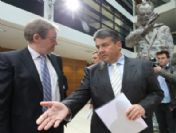 GERMANY ECONOMY PARTIESEPA02125999 GERMAN SOCİAL DEMOCRATS LEADER SİGMAR GABRİEL (R) TALKS TO DANİSH POUL NYRUP RASMUSSEN, CHAİRMAN OF THE PARTY OF EU