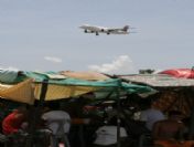 PHILIPPINES EU PHILIPPINE AIRLINES BANEPA02128612 A PHİLİPPİNE AİRLİNES (PAL) PLANE İS SEEN OVER SHANTİES İN MANİLA, PHİLİPPİNES ON 23 APRİL 2010. CİT