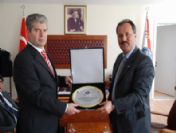 DTO Başkanı Necdet Özer ziyaret sonunda günün anısına Emniyet Müdürü Atilla Çınar'a plaket verdi.