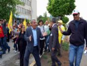 Eylemciler Atatürk Bulvarı üzerinden Emniyet Müdürlüğü yanındaki meydana kadar yürüdü. Yürüyüş esnasında BDP'li grup ile polis arasında gerginlik yaşandı. Terör örgütü lehine sloganlar atan BDP'li grubu görüntüleyen polis ile partililer arasında gerginlik yaşandı.