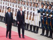 CHINA GERMANYEPA02160734 CHİNESE PRESİDENT HU JİNTAO (C) AND GERMANY'S PRESİDENT HORST K?HLER (R) WALK BY A GUARD OF HONOR DURİNG A WELCOMİNG CEREMONY
