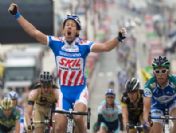 BELGIUM CYCLING BELGIUM TOUR STAGE 2EPA02175427 OVERAL LEADER BELGİAN CYCLİST PHİLİPPE GİLBERT OF OMEGA-PHARMA LOTTO, CELEBRATES ON THE PODİUM AFTER T