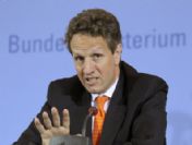 epa02175227 US Treasury Secretary Timothy Geithner (L) shakes hands with German Minister of Finance Wolfgang?Schaeuble?(R) before a press conference in Berlin, Germany, 27?May 2010. Both met for talks on the European financialdebt crises. EPA/WOLFGANG?KUMM