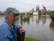 epa02176543 An elderly Pole watches the River Oder rise as he looks in the direction of Frankfurt Oder, from the town of Slubice, Poland 28 May 2010. The water level on the river continues to rise following the torrentials rains of the past week EPA/PATRICK PLEUL