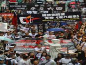 epa02179645 Leung Kwok-hung, pro-democracy lawmakersanother demonstrators carry a mock coffin as they commemorate those who died during the June 4th military crackdown on the democratic movement in Beijing in 1989, at a demonstration in Hong Kong, China, Hundreds of pro-democracy demonstrators staged a protest march in Hong Kong as part of an annual tradition ahead of a candle light vigil planned for 04 June, marking the 21st anniversary of the Tiananmen Square crackdown. EPA/YM YIK EPA