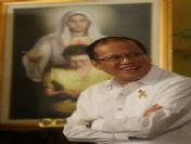 epa02194460 Philippines president-elect Senator Benigno 'Noynoy' Aquino III speaks while seated beside a portrait of his mother, the late former president Cory Aquino, during a press conference at the Aquino family home in Quezon City, east of Manila, Philippines 10 June 2010. Aquino was proclaimed president-elect by the Philippine Congress on 09 June after winning in the country's first ever automated elections held last 10 May. Aquino is set to replace outgoing president Gloria Macapagal-Arroyo. EPA/ROLEX DELA PENA