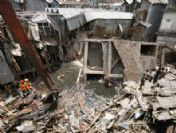 epa02183562 Hundreds of Bangladeshi people gather at the rescue site at Begunbari, Dhaka, Bangladesh 02 June 2010. Death toll rises to 18 while 21 people were rescued under the diasaster site after a five storey building collapsed on to shanties, officials said. EPA/ABIR ABDULLAH
