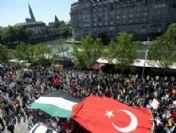 epa02187206 Pro-Palestinian protestors march during a demonstration in Strasbourg, France, 04 June 2010. Demonstration against Israel's raid on an aid flotilla bound for Gaza Strip on 31 May. Nine people were killeddozens wounded during the raid, mostly on board the Turkish ship Mavi Marmara, which had been carrying hundreds of people. EPA/THIERRY SUZAN