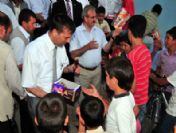 Vali Münir Karaloğlu, Recep'e bilgisayar sözü verdikten sonra köyün diğer çocuklarına da çikolata ve araba verdi.