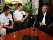 Başkan Aziz Kocaoğlu, İzmir Büyükşehir Belediyesi'nin Dünya Şampiyonası için Moskova'ya gidecek 2 genç güreşçisiyle bir araya gelerek "madalya sözü" aldı. İzmir Büyükşehir Belediye Başkanı Aziz Kocaoğlu, 6 - 12 Eylül tarihleri arasında Rusya'nın başkenti Moskova'da yapılacak Dünya Grekoromen Güreş Şampiyonası'nda ülkemizi temsil edecek Büyükşehir sporcularına, şampiyona öncesi moral takviyesinde bulundu. 96 kilo güreşçisi Ahmet Taçyıldız ve 60 kiloda güreşen Abdülsamet Uğurlu, Moskova yolculuğu öncesi Başkan Kocaoğlu'nu ziyaret etti. İzmir Büyükşehir Belediyesi Gençlik ve Spor Kulübü Başkanı Pervin Şenel Genç, Baş Antrenör Zekai Baykara ve antrenör Burhan Işık'ın da yer aldığı ziyarette, Başkan Aziz Kocaoğlu, genç sporcuları bugüne kadar elde ettiği başarılar nedeniyle kutladı ve Dünya Şampiyonası'ndan da madalya ile dönmelerini umut ettiğini söyledi. Büyükşehir Belediye Başkanı Aziz Kocaoğlu, milli sporumuz güreşte ülkemiz adına önemli başarılar elde etmeyi hedeflediklerini belirterek, "Dilerim, Rusya'daki şampiyonada da İstiklal Marşımızı okutur, bayrağımızı göndere çektirirsiniz. Biz de bu hazzı İzmirliler ve Türk halkı olarak hep beraber yaşarız" dedi. Ahmet Taçyıldız ve Abdülsamet Uğurlu, geçtiğimiz haftalarda Romanya'da yapılan uluslararası turnuvada tüm rakiplerini yenerek altın madalyaya ulaşmış, her iki güreşçi de bu önemli başarılarının ardından Rusya'da yapılacak Dünya Şampiyonası için Türk Milli Takımı kadrosuna davet edilmişti.