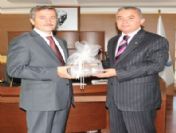 Şahinbey ilçe Kaymakamı Uğur Turan kendisine 'hoş geldin' ziyaretinde bulunan Şahinbey Belediye Başkanı Mehmet Tahmazoğlu'na iade-i ziyarette bulundu.
