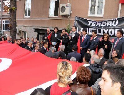 ‘Şehitler ölmez vatan bölünmez’, ‘Hepimiz Mehmediz’, ‘Şehidim hakkını helal et bize’ ve ‘Kahrolsun PKK’ sloganları atılan eylemde şehitler için dua okundu.