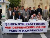 Şanlıurfa Sivil Toplum Kuruluşları Platformu bünyesinde barındırdığı 50 dernek ve vakıfla beraber Van depremine gönderilmek üzere yardım kampanyası başlattı Platform Hasan Paşa Cami avlusu ve Şair Nabi Kültür Merkezi önünde yardım toplama işlemlerine başladı.