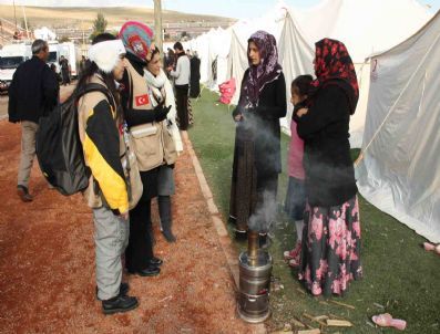 İlçe stadına kurulan çadırkenti gezen psikologlar, yakınlarını kaybeden kadınlar ve çocuklarıyla görüşerek psikolojik destek vermeye çalıştı. Depremzede bazı kadınlar, yaşadıkları acıyı psikologlarla paylaşırken gözyaşlarını tutamadı. Beş gün süreyle bölgede kalacak olan psikologlar, depremzedelere normal yaşantılarına dönmelerinde yardımcı olmaya çalışacak.