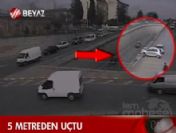 Eşref Bitlis alt geçidinde 13 Nisan günü meydana gelen ve güvenlik kamerasına saniye saniye yansıyan olayda, bayan sürücünün kullandığı öğrenilen bir otomobil, yoldan çıkıyor. Otomobil, bariyeri aşarak yaklaşık 5 metre yükseklikten aşağıya düşüyor.
