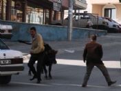 Belediye ekipleri, vatandaşlar ve basın mensupları kaçan boğaların peşinde zor anlar yaşadı. Ovacık Kurban Pazarı`nda kaçan Mehmet Ali Kaya`ya ait kurbanlık boğa kaçarken bir kadını yaraladı. Kurban sahipleri bir taksi ile boğayı takip etti. Balkan sokakta bir süre bekleyen boğa tekrar kaçmaya başladı. Bademlik Caddesi`nde önüne geçenlere saldıran boğa bir apartmanın önünde sıkıştırıldı. UYUŞTURUCU İĞNEYLE VURULDU Burada uzun süre vatandaşlara direnen danaya Keçiören Belediyesi Boğa Yakalama Timi elemanları tarafından tabancayla uyuşturucu iğne atıldı. Atılan iğneye rağmen sakinleşmeyen dana tekrar kaçtı. Dana kaçarak Balkan Sokağa döndü. Burada belediye ekipleri tarafından yakalanan dana olduğu yerde kesildi