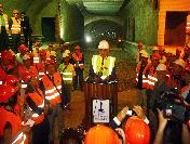 Hattın, Üçyol’dan İzmirspor ve Hatay istasyonlarına kadar olan bölümünde rayların büyük ölçüde döşendiğini ve artık sadece ince işlerin kaldığını söyleyen İzmir Büyükşehir Belediye Başkanı Kocaoğlu, metro projelerinin tamamlanmasının ardından günlük 140 - 150 bin olan yolcu sayısının 300 bini aşmasını beklediklerini söyledi. Büyük kentlerde bin 800 otobüsle her sabah işe, okula, hastaneye yolcu taşıyarak insanları mutlu etmenin mümkün olmadığını dile getiren Başkan Aziz Kocaoğlu şöyle devam etti: “Üçyol - Üçkuyular metro hattında artık ince işçilikleri yapıyoruz. Bu iki istasyonun üst yollarını da trafiğe açarak Hatay Caddesi’ni büyük ölçüde rahatlattık. Bir, bir buçuk ay içinde Göztepe İstasyonu’nun da üst bölümünü trafiğe açıyoruz. Projenin en sıkıntılı bölümünü, Poligon İstasyonu. Burada zeminden kaynaklanan ciddi bir problem yaşandı ve bu yüzden farklı özellikleri olan yeni bir iş makinesi getirildi. Şimdi bu bölgede yoğun çaba harcıyoruz. Bizim hedefimiz, yıl sonuna kadar bu hattı açmak, en azından deneme seferlerine başlamak. Şu anda bir anormallik görünmüyor.” İzmir Büyükşehir Belediye Başkanı Aziz Kocaoğlu, metro projesinin Büyük Kanal ve Aliağa - Menderes’ten sonra kentin tarihindeki en büyük 3. proje olduğunu söyledi. 20 yılda tamamlanan Büyük Kanal Projesi’nin ardından en büyük iki projenin kendi döneminde hayata geçirilmiş olacağını belirten Başkan Kocaoğlu, bunun da kendisine büyük mutluluk yaşatacağını dile getirdi.