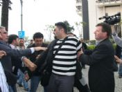 İzmir Büyükşehir Belediyesi Başkanlık kapısı önünde, Başkan Aziz Kocaoğlu'nun makam aracına yumurta atmak isteyen ve LDP İzmir milletvekili adayı olduğunu söyleyen Baki Aslan, koruma polisleri tarafından yakalandı.