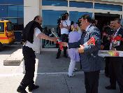 Kayseri Esnaf ve Sanatkarlar Odaları Birliği 11 yıldır sürdükleri geleneği bu gün de devam ettirdi. Esnaf temsilcileri tarafından çiçeklerle karşılanan gurbetçiler, havaalanında bulunan oy sandığında oylarını kullandı.