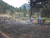Yangın söndürme çalışmalarını yöneten Simav Orman İşletmesi Merkez Şefi Mehmet Başaran, tarım alanında çıkan yangının bitişiğindeki ormanlık alana sıçramaması için işletmeye ait 3 arozöz, 2 ilk müdahale aracı, 2 pikap ve 2 su ikmal cihazıyla anında müdahalede bulunduklarını kaydetti.