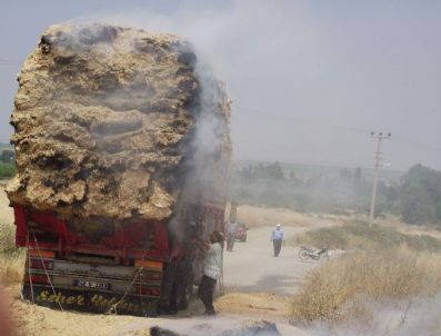 Araç sürücüsünün durumu fark ederek kenara çekmesi ve itfaiyeye haber vermesiyle olay yerine gelen itfaiye ekipleri iki saat süren çalışma ile yangını önledi.Olay, Afyonkarahisar Konya Karayolu üzerinde meydana geldi. Edinilen bilgiye göre, Yunak ilçesine bağlı Kuzören köyünden yüklediği saman balyalarını Aydın`a götürmek üzere yola çıkan Duran Sivri yönetimindeki 42 U 2353 plakalı kamyonun kasasındaki saman balyaları, Akşehir`e bağlı Yeniköy çıkışında bilinmeyen bir sebeple yanmaya başladı. Sürücü Duran Sivri balyaların yandığını fark edince aracını yolun kenarındaki boşluk bir alana çekerek durumu itfaiyeye bildirdi. Akşehir Belediyesi İtfaiye Müdürlüğü`ne bağlı ekipler olay yerine gelerek araçtaki yangına müdahale ederken, samanlardan çıkan kıvılcımların da çevreye sıçramaması için çaba sarf etti. İki saat süren çalışmalar sonunda araçtaki saman balyaları söndürülerek araç üzerinden yere indirilip soğutma çalışmalarına devam edildi. Yangın sırasında araçtan sıçrayan kıvılcımlar sonucu çevrede bulunan 30`a yakın küçük ağaç ve çalı da zarar gördü. Yangın sonrası araçta 3 bin lira maddi zarar meydana gelirken, Akşehir Belediyesi İtfaiye Müdürlüğü yetkilileri, özellikle sap ve saman taşıyan araçların üzeri kapalı ve tenteli bir şekilde seyretmesi gerektiğinin altını çizdiler. Bu şekilde açıkta giden saman balyalı araçların özellikle diğer araçlardan atılan sigara izmaritlerinin hedefi haline geldiği, rastgele atılan bu izmaritlerin bu araçlara yapışıp istenmeyen sonuçlar doğurduğuna ve mutlaka bu tür taşıma işlemlerinin kapalı ve tenteli araçlarla gerçekleştirilmesi gerektiğine dikkat çektiler.